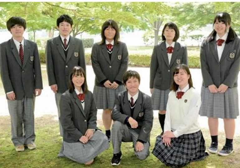 制服はグレーを基調としてる。 アレンジできるので、人気はある。 女子のスラックスも取入れられた。