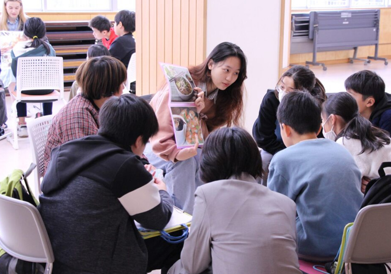 キャンパスツアーなども定期的に開催しています。地元の小学校でのワークショップなどもあり、留学生と日本人の国際交流にも力をいれています。