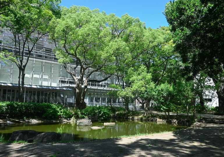キャンパス内には、緑がとにかく多く「かたらいの森」という名の森や池があります。都心から、ちょっと離れていて、自然環境が豊でありながら、千葉駅など、大きな駅にも近いのが特徴です。