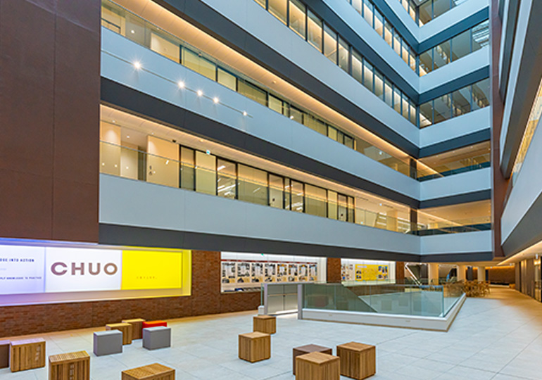 中央大学 市ヶ谷田町キャンパス(通称:中央大学ミドルブリッジ)は、2019年に新設された「国際情報学部」の拠点として機能している、地上15階・地下1階の都市型高層キャンパスです。