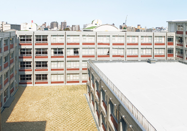 体育館にやっとエアコンがつきました。図書館の本は多いです。名古屋の中心部にあるので、校庭は広くはないです。