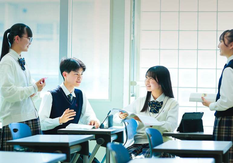 思考力・表現力の育成まで6年間をフルに使ったカリキュラムです。国公立大や難関私大に現役合格できる学力を作ることを目指しています。