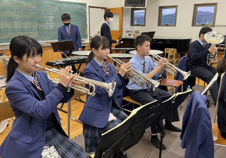 吹奏楽部は、部員数が100名ほどいて、全国大会などにも出場しています。