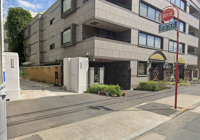 広尾駅より、徒歩10分の場所にあります。学校の正門は、「ここか?」というような、住宅街にあります。