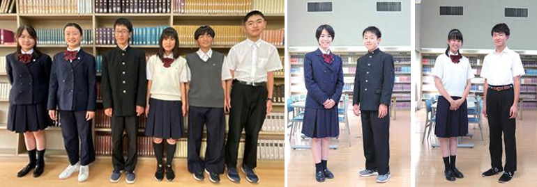 男子は学ラン、女子はブレザーに無地のスカート、胸元にはリボンです。伝統はあるが、古いタイプの制服です。