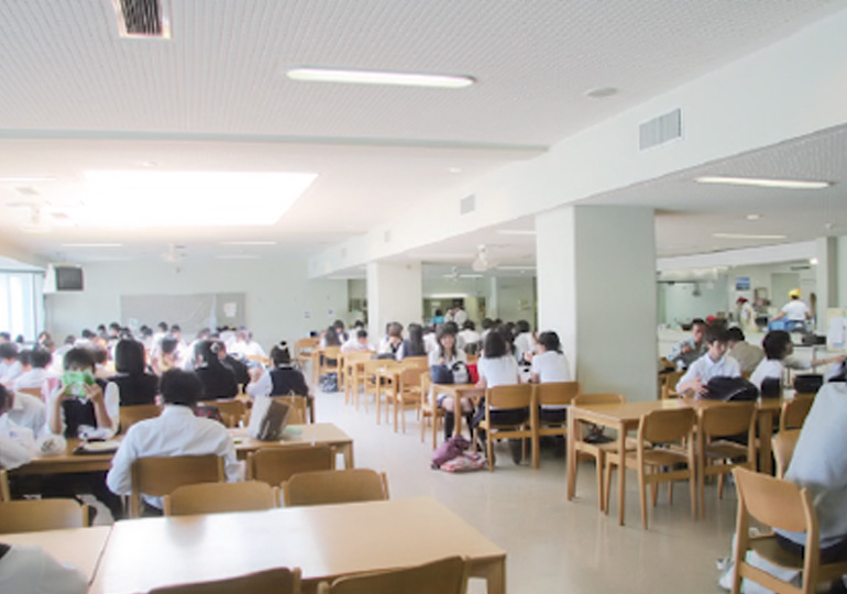 学食は250席あり、「唐揚げ丼」「カツカレー」などが人気です。