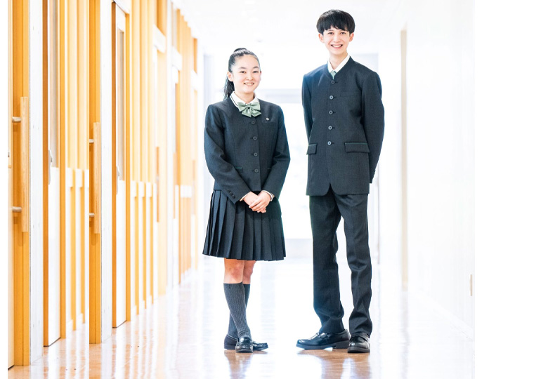 中等部の制服です。女子はブレザーにチェックのスカートです。