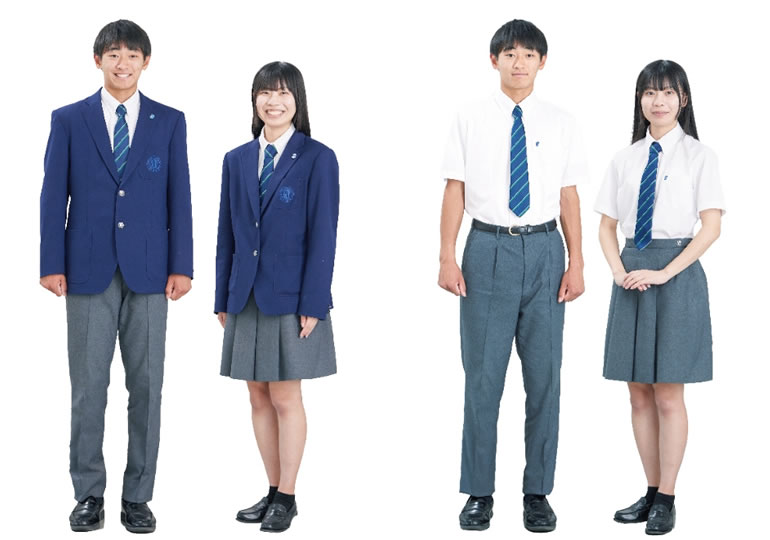 現在の制服の色目「湘南ブルー」を忠実に再現し、シルエットの見直し+機能性アップで「着心地」「着やすさ」「扱いやすさ」を実現しました。2020年度より、女子のスラックスを導入しました。(選択可)